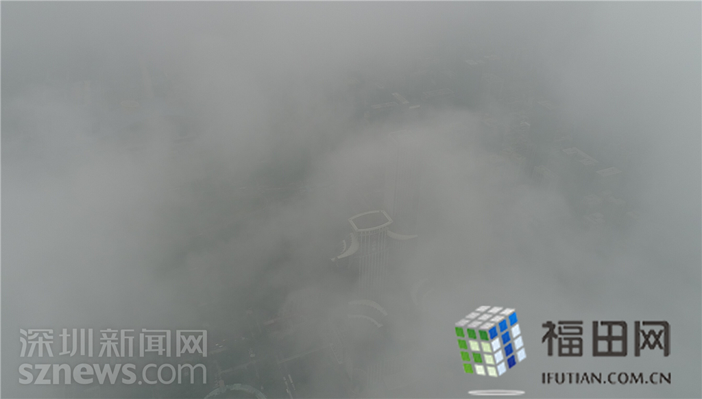 從平安大廈頂樓往下看,深圳高爾夫球場的綠地和湖泊已經(jīng)分辨不清了,能見度降到1公里。