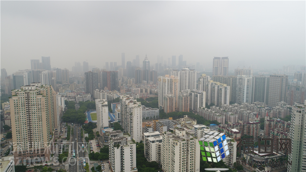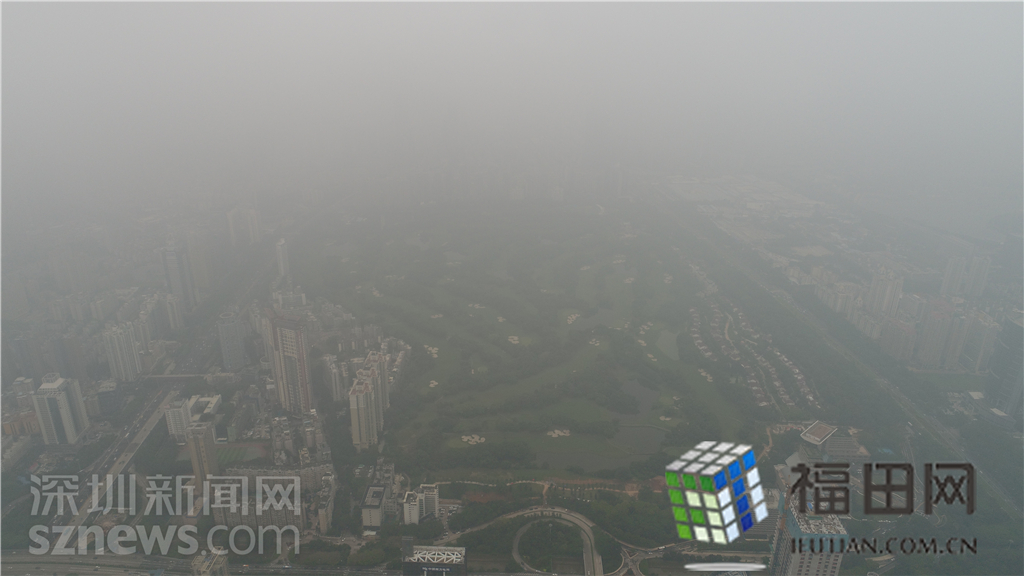 整個(gè)福田中心區(qū)都籠罩在灰霾之中。