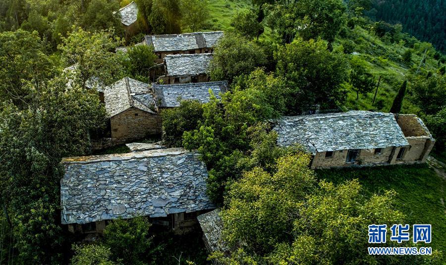 掩映在大山之中的石板房古村落,人去房空(8月7日無人機(jī)拍攝)。 新華社記者陶明攝