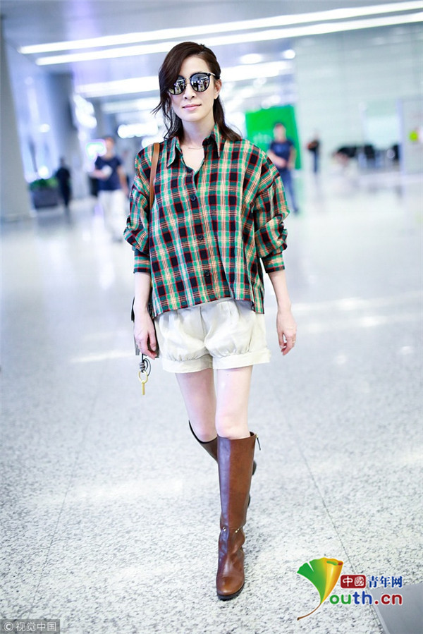 2018年9月9日,“嫻妃”佘詩(shī)曼從上海機(jī)場(chǎng)飛往北京機(jī)場(chǎng),她擺“剪刀腿”大方任拍,身穿格紋襯搭配衫燈籠褲,時(shí)髦青春衣品超贊!