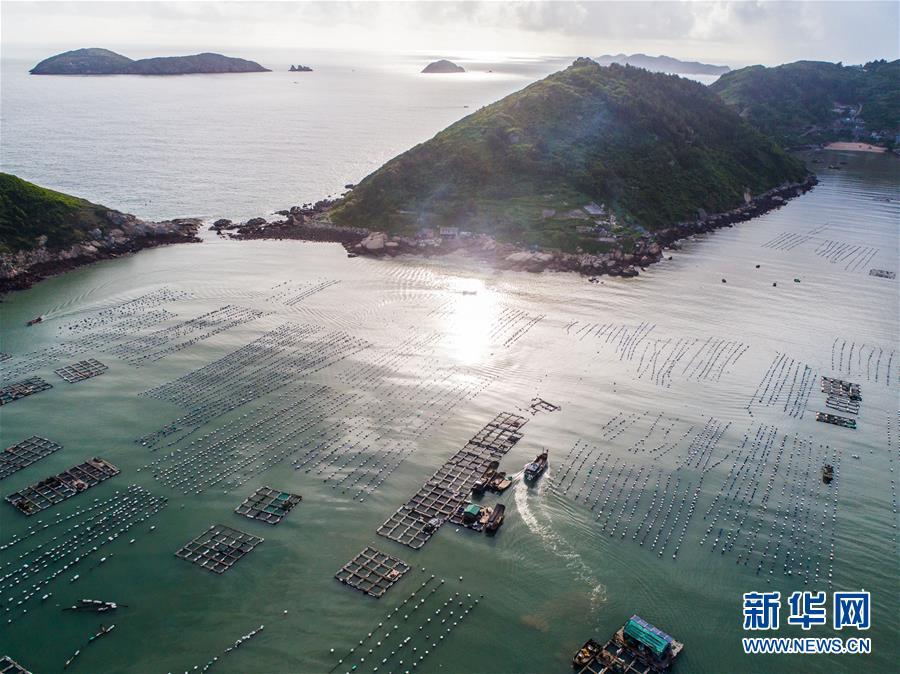 8月19日,空中俯瞰南麂島海域內(nèi)的“海上牧場”養(yǎng)殖區(qū)(無人機(jī)拍攝)。進(jìn)入8月,浙江省溫州市平陽縣南麂鎮(zhèn)海域上大片的大黃魚、貽貝等特色海產(chǎn)品養(yǎng)殖區(qū)域迎來豐收季節(jié),養(yǎng)殖戶們駕駛漁船在養(yǎng)殖區(qū)海域進(jìn)行打撈收獲,在碧海藍(lán)天下構(gòu)成了一幅“海上牧場”的美麗豐收景象。近年來,南麂鎮(zhèn)政府引導(dǎo)漁民養(yǎng)殖戶充分發(fā)揮“靠海吃海”的資源優(yōu)勢,大力發(fā)展海洋養(yǎng)殖經(jīng)濟(jì)和海島旅游經(jīng)濟(jì),實(shí)現(xiàn)了南麂由“生態(tài)美”向“產(chǎn)業(yè)美”,“產(chǎn)業(yè)美”向“經(jīng)濟(jì)美”的轉(zhuǎn)變。同時(shí)該鎮(zhèn)堅(jiān)持以大黃魚、貽貝等為特色產(chǎn)業(yè)支撐,精準(zhǔn)發(fā)展高效海洋養(yǎng)殖業(yè),重點(diǎn)培養(yǎng)一批新型職業(yè)漁民,依靠專業(yè)技術(shù)支持,實(shí)現(xiàn)深海仿生養(yǎng)殖,讓好生態(tài)造就好品質(zhì),重點(diǎn)打造南麂養(yǎng)殖品牌,組建營銷網(wǎng)絡(luò),拓展特色海產(chǎn)品市場。新華社記者 徐昱攝