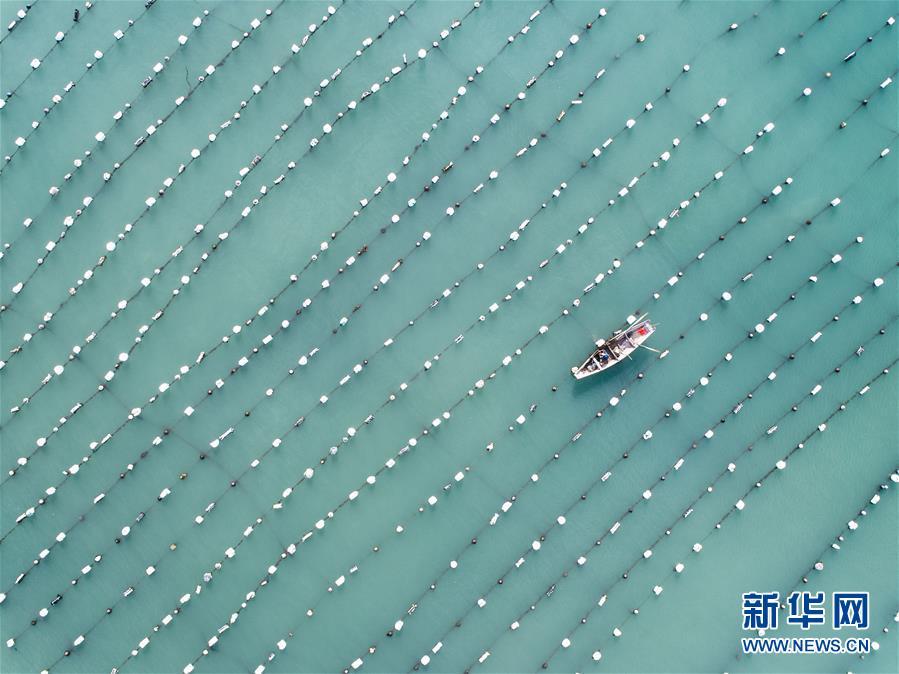 8月18日,南麂島馬祖岙海灣內(nèi),養(yǎng)殖戶乘船在貽貝養(yǎng)殖區(qū)內(nèi)作業(yè)(無人機(jī)拍攝)。進(jìn)入8月,浙江省溫州市平陽縣南麂鎮(zhèn)海域上大片的大黃魚、貽貝等特色海產(chǎn)品養(yǎng)殖區(qū)域迎來豐收季節(jié),養(yǎng)殖戶們駕駛漁船在養(yǎng)殖區(qū)海域進(jìn)行打撈收獲,在碧海藍(lán)天下構(gòu)成了一幅“海上牧場”的美麗豐收景象。近年來,南麂鎮(zhèn)政府引導(dǎo)漁民養(yǎng)殖戶充分發(fā)揮“靠海吃?!钡馁Y源優(yōu)勢,大力發(fā)展海洋養(yǎng)殖經(jīng)濟(jì)和海島旅游經(jīng)濟(jì),實(shí)現(xiàn)了南麂由“生態(tài)美”向“產(chǎn)業(yè)美”,“產(chǎn)業(yè)美”向“經(jīng)濟(jì)美”的轉(zhuǎn)變。同時(shí)該鎮(zhèn)堅(jiān)持以大黃魚、貽貝等為特色產(chǎn)業(yè)支撐,精準(zhǔn)發(fā)展高效海洋養(yǎng)殖業(yè),重點(diǎn)培養(yǎng)一批新型職業(yè)漁民,依靠專業(yè)技術(shù)支持,實(shí)現(xiàn)深海仿生養(yǎng)殖,讓好生態(tài)造就好品質(zhì),重點(diǎn)打造南麂養(yǎng)殖品牌,組建營銷網(wǎng)絡(luò),拓展特色海產(chǎn)品市場。新華社記者 徐昱攝