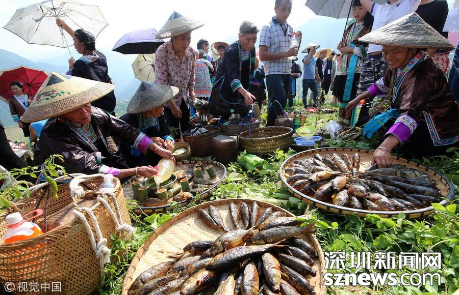 深圳新聞網(wǎng)訊 2018年9月15日,廣西柳州市融水苗族自治縣喜迎中國首屆“農(nóng)民豐收節(jié)”——2018金秋燒魚季啟動儀式在桿洞鄉(xiāng)花孖苗寨舉行,數(shù)百名苗族群眾和游人共同開展了水田拔河、田間捉魚、傳統(tǒng)打谷和燒魚等活動,慶祝豐收。
