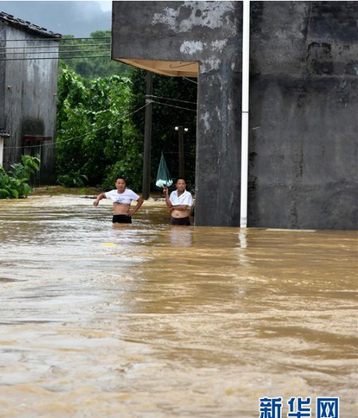 9月18日,陽春市勝利街積水嚴重。 新華社記者 周科 攝