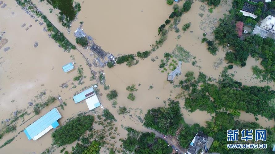 這是9月18日在廣東省陽江市陽春市拍攝的水浸情況(無人機拍攝)。 新華社記者張加揚攝
