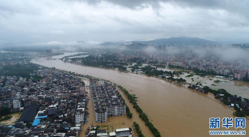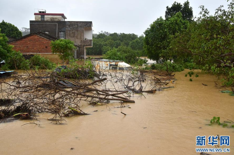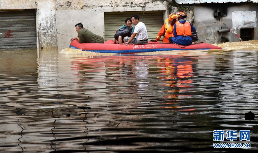 9月18日,陽春市漠陽江畔的街道被洪水淹沒。 新華社記者 周科 攝