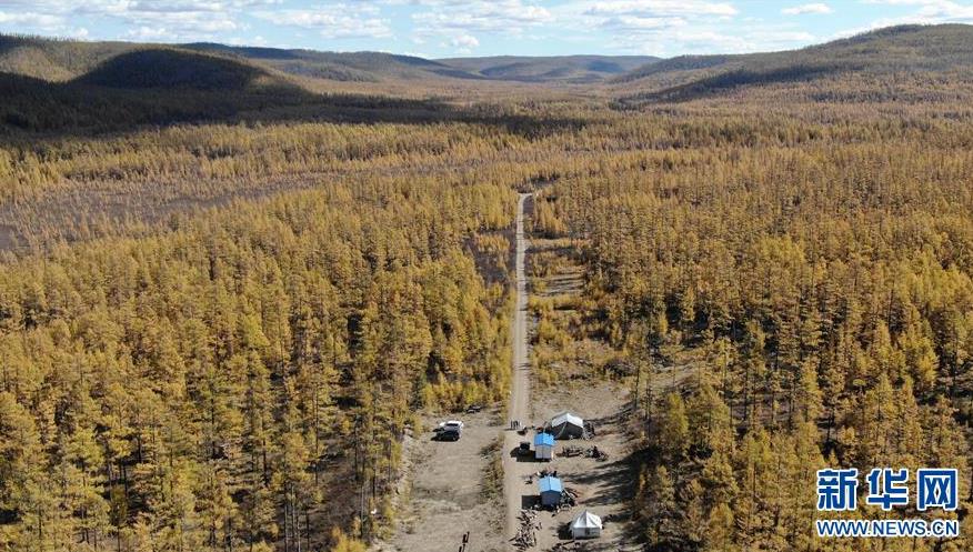 9月18日,在內(nèi)蒙古大興安嶺根河林業(yè)局約安里林場,林場職工在河套取生活用水(無人機(jī)拍攝)。新華社記者李任滋攝