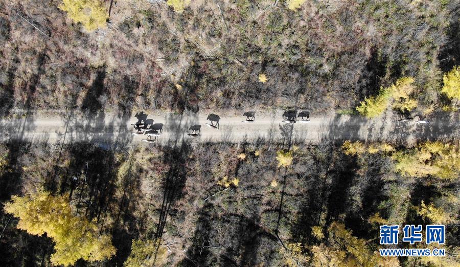 內(nèi)蒙古大興安嶺根河林業(yè)局約安里林場里的馴鹿(9月18日無人機(jī)拍攝)。新華社記者李任滋攝