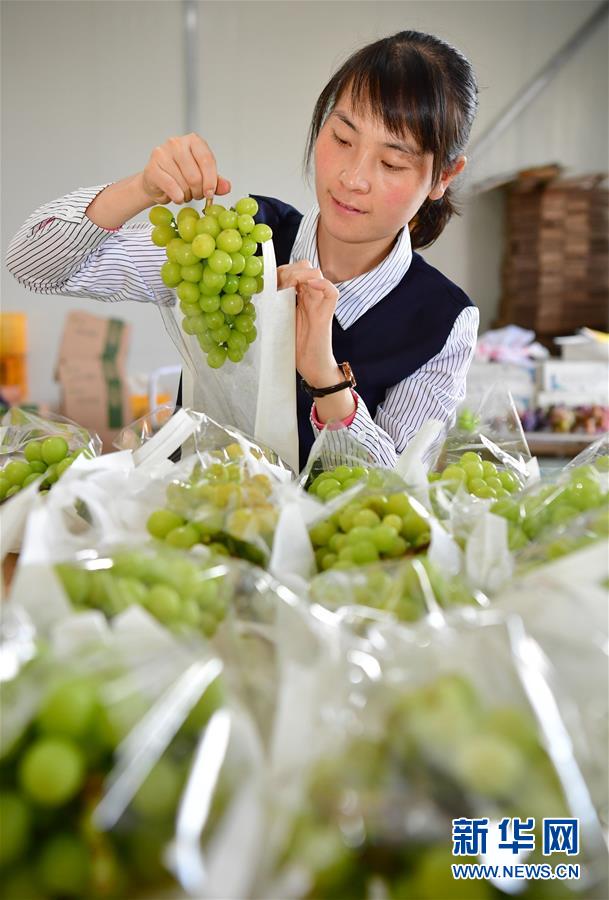 9月21日,楊凌錦田果蔬專(zhuān)業(yè)合作社的工作人員將剛采摘下來(lái)的葡萄裝袋。