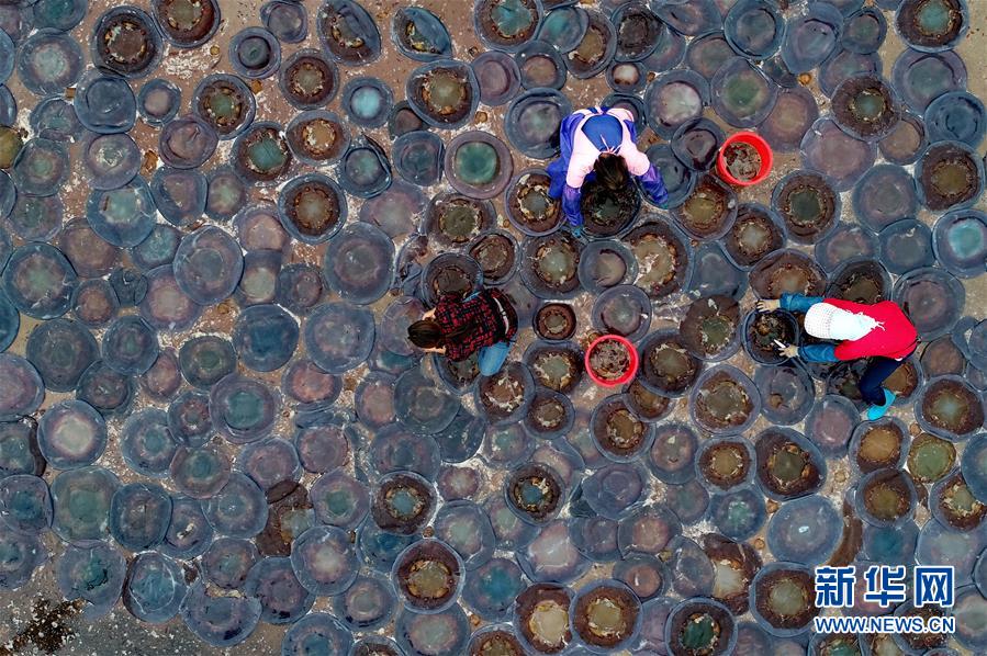 時下正值渤海灣海域海蜇收獲季節(jié),河北省灤南縣漁民開始捕撈養(yǎng)殖的海蜇。據介紹,今年該縣養(yǎng)殖的海蜇總產量預計超2000萬斤,產品將銷往京津冀以及上海、廣州、福州等地。