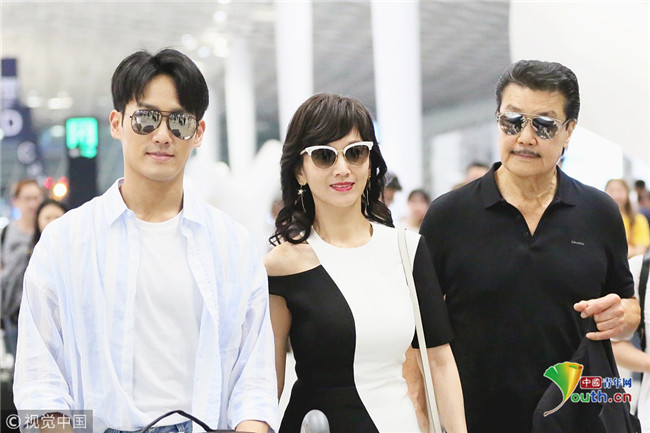 2018年9月25日晚,深圳,剛參加完央視秋晚的趙雅芝攜老公黃錦燊及兒子黃愷杰抵達(dá)深圳寶安機(jī)場(chǎng),超高顏值的一家人所致之處頻頻引起側(cè)目,其子黃愷杰自推行李車(chē),俊朗的外形引起粉絲一路跟拍,相當(dāng)拉風(fēng)!