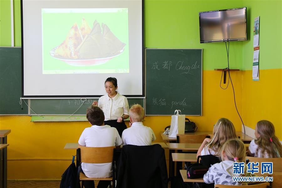 9月25日,在波蘭羅茲第一小學(xué),成都青白江區(qū)外國語小學(xué)老師李艷向波蘭小學(xué)生介紹中國美食。成都青白江區(qū)外國語小學(xué)與波蘭羅茲第一小學(xué)25日在波蘭中部城市羅茲簽署友好學(xué)校合作協(xié)議。這是繼成都與羅茲2015年結(jié)為友城之后,兩座城市人文交流合作的又一新成果。2013年,東起成都青白江、西至羅茲的中歐班列(蓉歐快鐵)開通。5年來,來往兩地的班列不斷增加,有力促進了成都與羅茲在經(jīng)貿(mào)、教育、文化等多領(lǐng)域的交流與合作。新華社記者 陳序 攝