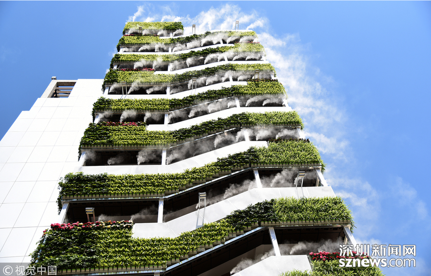 “仙氣飄飄”、“西安天氣有多熱,房子都冒煙了”,這是一段抖音小視頻里網(wǎng)友的評(píng)論留言。視頻中一棟10層高的樓外側(cè)樓梯處掛滿(mǎn)了綠植,同時(shí)綠植上方還有噴霧。藍(lán)藍(lán)的天空當(dāng)做背景,引來(lái)不少人上前拍照,配著背景音樂(lè)的確讓人感覺(jué)清涼無(wú)比。