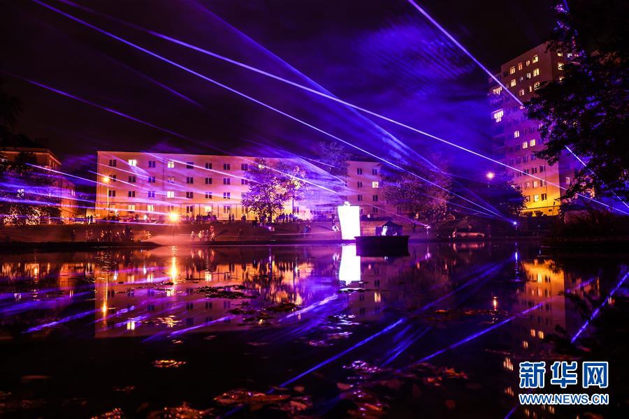 這是9月28日在波蘭羅茲市中心拍攝的2018“舞動”燈光節(jié)現(xiàn)場。2018“舞動”燈光節(jié)于9月28日至30日在波蘭中部交通樞紐城市——羅茲市舉行,各式各樣的光影表演在這座城市的各個角落同時上演,組成了一場如夢如幻的大型燈光秀。新華社記者陳序攝