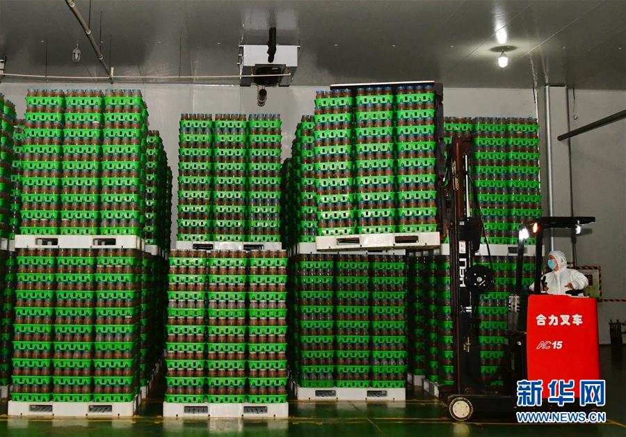 在位于清豐縣的河南龍豐實(shí)業(yè)股份有限公司,一名工人操作叉車在培養(yǎng)車間搬運(yùn)接種后的食用菌栽培瓶(9月28日攝)。新華社記者馮大鵬攝