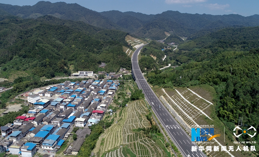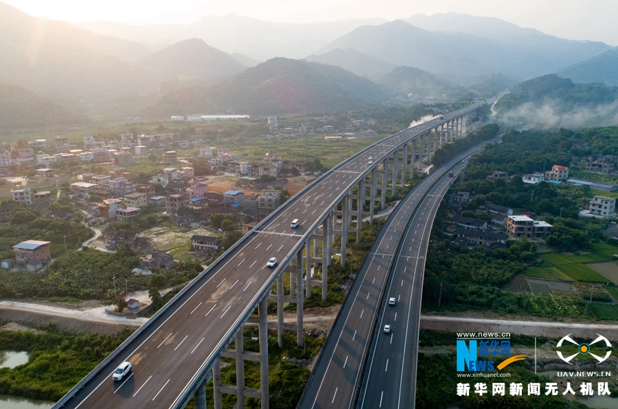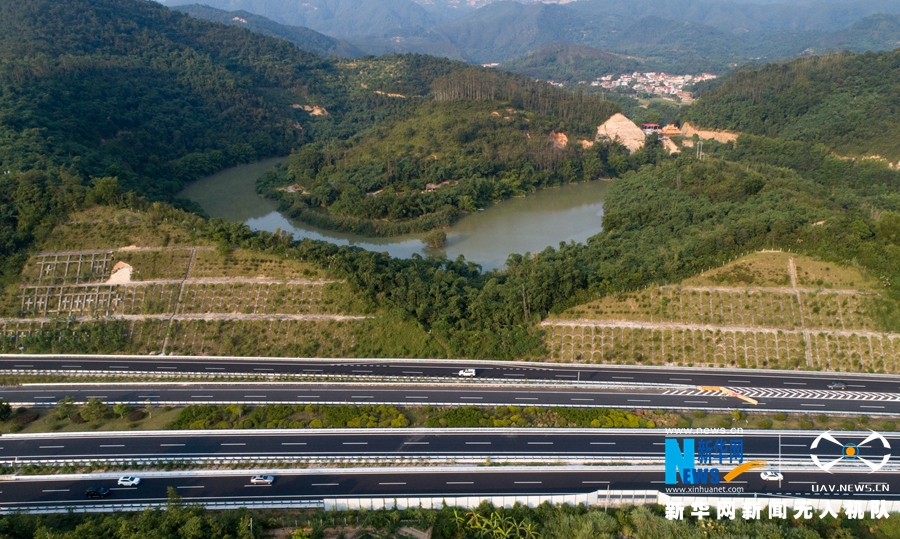 這是改擴建工程施工后的廈蓉高速南靖縣和溪路段(無人機拍攝)。新華網(wǎng) 肖和勇 攝