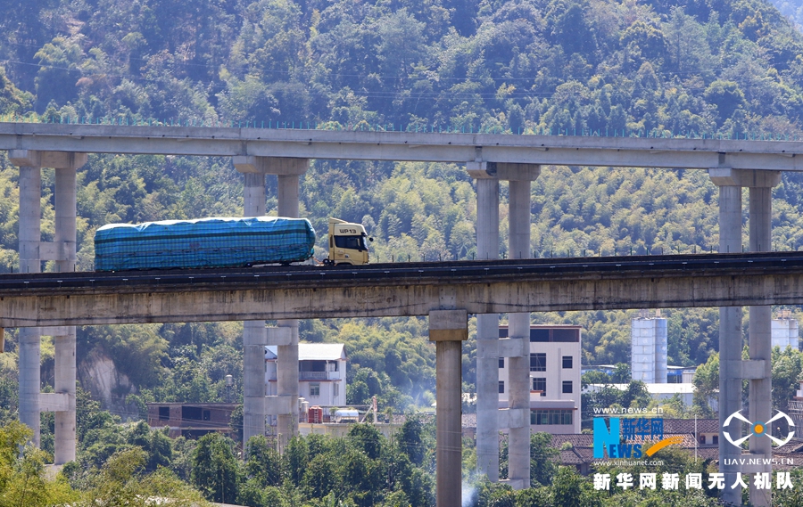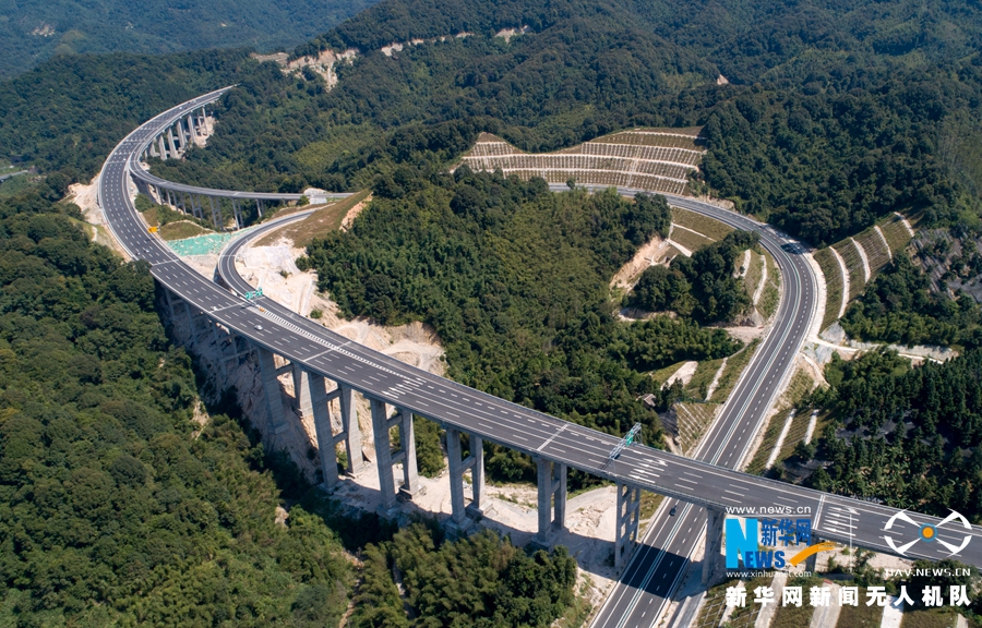 這是廈蓉高速長下坡龍巖路段的道路景觀(無人機拍攝)。新華網(wǎng) 肖和勇 攝