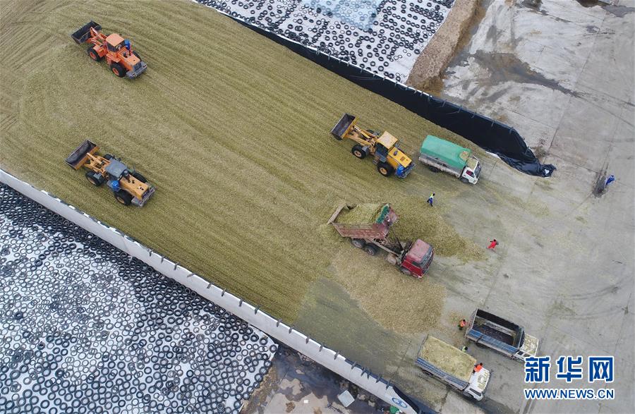 10月8日,工人駕駛機(jī)械設(shè)備在青貯飼料場(chǎng)作業(yè)(無(wú)人機(jī)拍攝)。 近年來(lái),河北省故城縣結(jié)合市場(chǎng)需求,通過(guò)“龍頭企業(yè)+基地+農(nóng)戶(hù)”的經(jīng)營(yíng)模式,鼓勵(lì)引導(dǎo)農(nóng)民發(fā)展訂單式青貯玉米種植,不僅增加了種植戶(hù)收入,而且為養(yǎng)殖企業(yè)提供了優(yōu)質(zhì)飼料。目前,故城縣已發(fā)展青貯玉米種植面積6萬(wàn)余畝。 新華社記者 朱旭東 攝