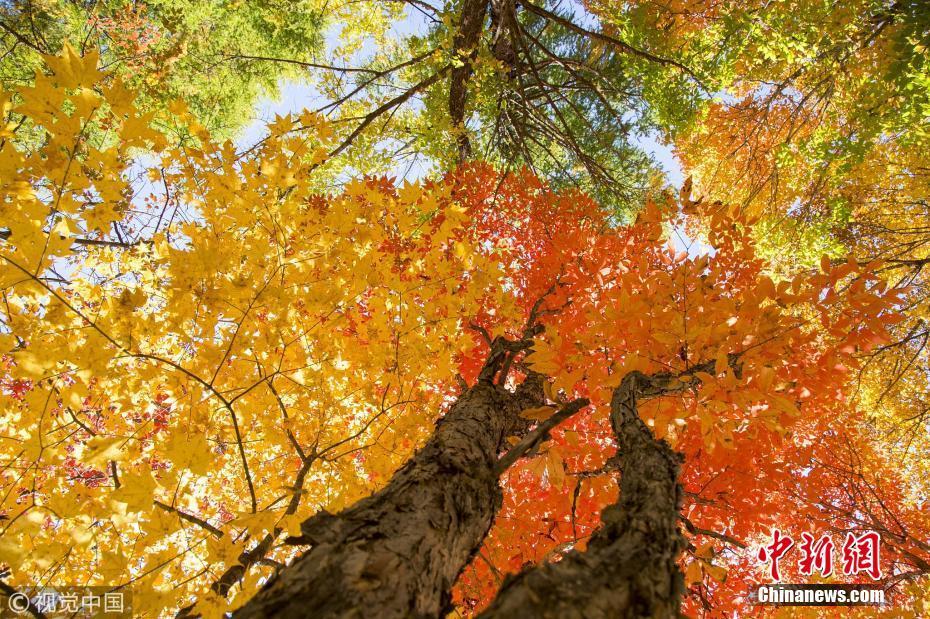 10月5日,吉林省磐石市取柴河鎮(zhèn)西大地村雞爪子溝的楓葉經(jīng)過(guò)秋霜的洗禮進(jìn)入了最佳觀賞期,農(nóng)民在山上賣土特產(chǎn)。 圖片來(lái)源:視覺(jué)中國(guó)