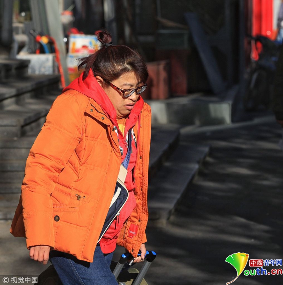 市民穿上羽絨服御寒。
