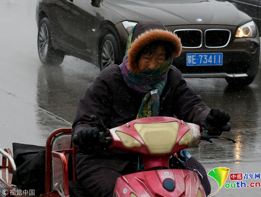 市民雨雪中出行。圖片作者 /視覺中國