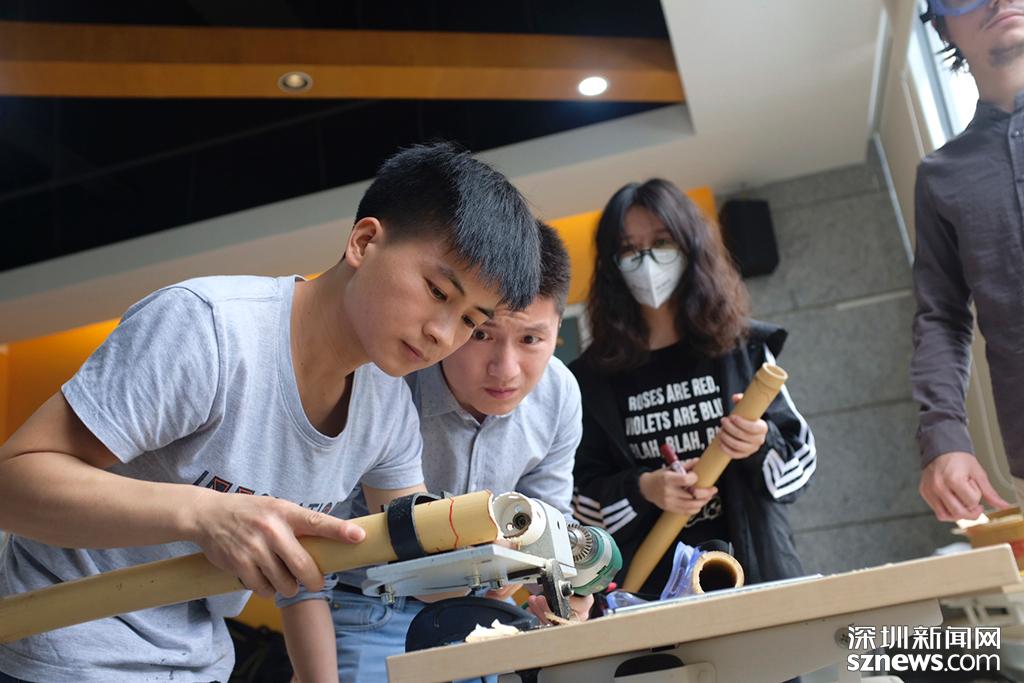 本次工作坊屬于綠色智造創(chuàng)客工坊的一部分,吸引了來自不同國家的大約20名學(xué)員參與,學(xué)員先通過挑選三根大的竹子和四根小的竹子來做單車的前三角和后三角,之后用機器打磨讓竹子變成合適的大小,之后進行組裝,最后變成一輛竹子單車。