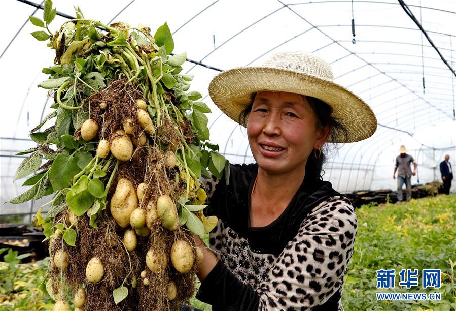 9月23日,張北縣小二臺鎮(zhèn)一家馬鈴薯育種中心的工人在大棚內(nèi)展示收獲的脫毒微型薯。 近年來,地處壩上地區(qū)的河北省張北縣因地制宜,積極推進(jìn)馬鈴薯產(chǎn)業(yè)化發(fā)展,形成了馬鈴薯繁種育種、商品薯種植、倉儲、加工為一體的產(chǎn)業(yè)鏈,帶動農(nóng)民增收致富。 新華社記者楊世堯攝