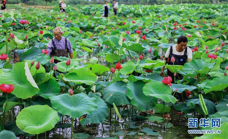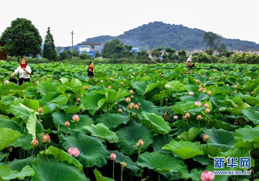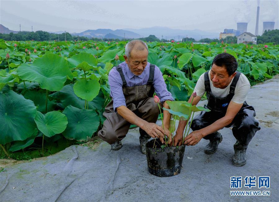 6月3日,荷農(nóng)們將觀賞性荷花裝盆準(zhǔn)備銷(xiāo)售。 進(jìn)入初夏時(shí)節(jié),浙江省湖州市長(zhǎng)興縣呂山鄉(xiāng)圣蓮苑荷花基地內(nèi)200多畝30多種各色荷花競(jìng)相開(kāi)放,該基地也迎來(lái)了荷花銷(xiāo)售和旅游觀光的旺季。據(jù)介紹,呂山鄉(xiāng)是浙江省長(zhǎng)興縣當(dāng)?shù)貍鹘y(tǒng)的蓮藕產(chǎn)區(qū),近年來(lái)開(kāi)始逐步升級(jí)打造“荷花之鄉(xiāng)”。不同于傳統(tǒng)的種荷收藕的思路,當(dāng)?shù)亟柚吧鷳B(tài)+創(chuàng)意”的理念種植、銷(xiāo)售觀賞盆栽荷花,一畝觀賞性荷花的產(chǎn)值可達(dá)到8萬(wàn)元,比普通種植蓮藕增收超過(guò)20倍,同時(shí)也推動(dòng)了鄉(xiāng)村旅游經(jīng)濟(jì),帶動(dòng)荷農(nóng)收入增長(zhǎng),助力鄉(xiāng)村振興。新華社記者徐昱 攝