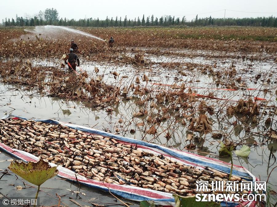 藕農(nóng)泥中“掘金” 初秋時(shí)節(jié)采藕忙
