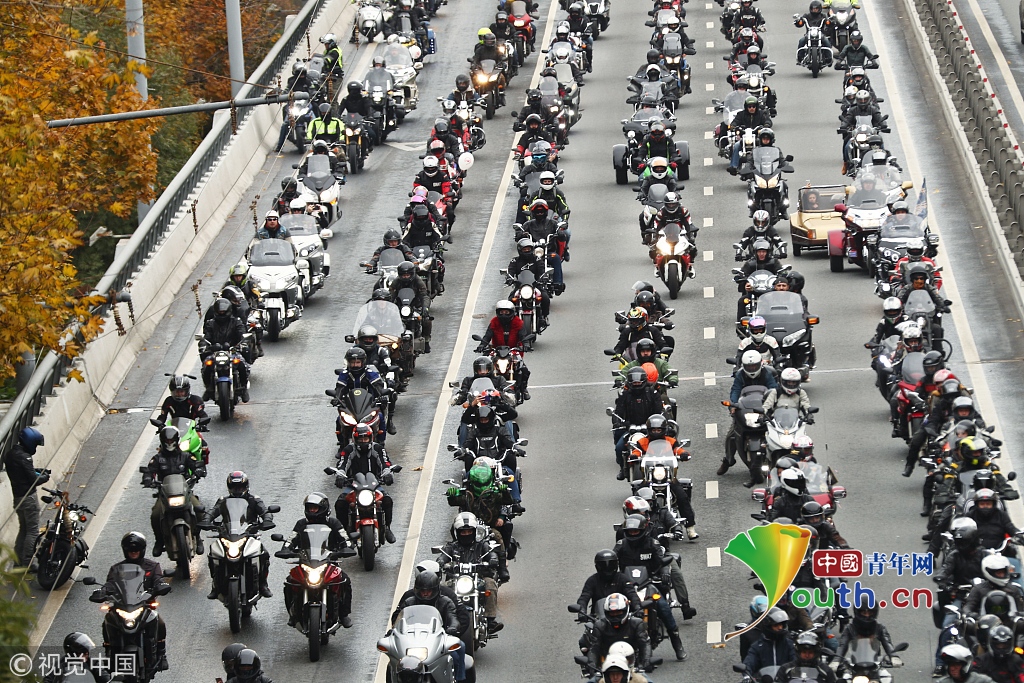 莫斯科舉行摩托車游行 重機集體上路超炫酷