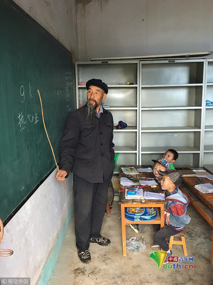 2017年9月26日,甘肅省武山縣樺林鎮(zhèn),有一個(gè)住著80多戶(hù)人家的小山村,叫柒坪村。村里有個(gè)沒(méi)有名字的幼兒園,里面有16個(gè)可愛(ài)的孩子。這個(gè)幼兒園的老師,不是女老師,更不是年輕人,是一位男老師,是一位75歲的老教師,他叫高世榮。圖片作者:一平/視覺(jué)中國(guó)