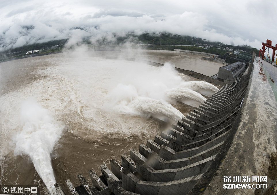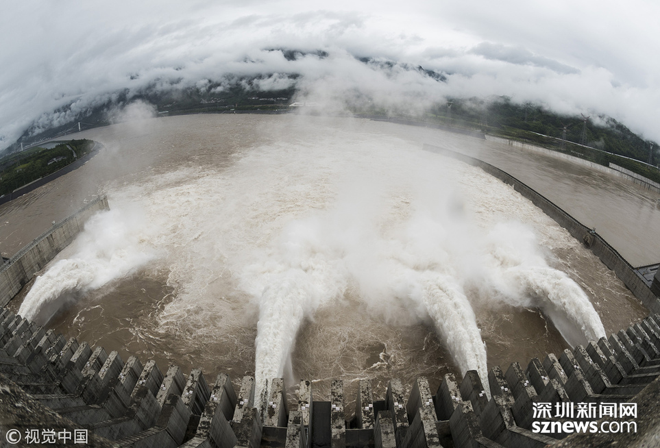 深圳新聞網(wǎng)訊 2018年7月5日,三峽大壩今年首次開閘泄洪。當(dāng)天,三峽大壩開啟5個(gè)泄洪孔下泄洪水,至中午12點(diǎn)左右減至2個(gè)。