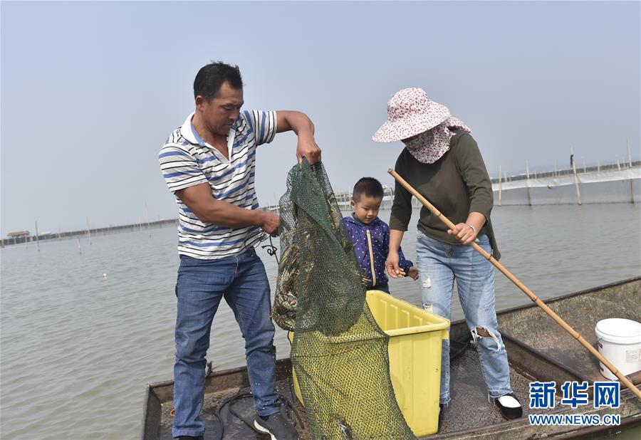 10月17日,湖州廟港人水產(chǎn)有限公司蟹農(nóng)在太湖養(yǎng)殖基地捕撈大閘蟹。 時值重陽,太湖南岸的大閘蟹開始大批量上市,迎來豐收季。浙江省湖州市近年來結(jié)合太湖水治理,提升太湖漁業(yè)資源質(zhì)量。目前,湖州太湖蟹養(yǎng)殖面積3.6萬畝左右,年產(chǎn)3000多噸。 新華社記者錢一攝