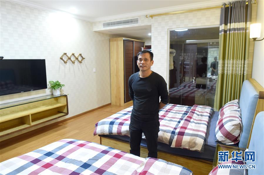 棠里塢村民宿負(fù)責(zé)人徐學(xué)德在民宿客房?jī)?nèi)(10月16日攝)。 浙江諸暨市陳宅鎮(zhèn)棠里塢村積極盤(pán)活閑置資源,吸引社會(huì)資本參與鄉(xiāng)村振興。棠里塢村一處面積2000多平方米的廢棄豬場(chǎng),經(jīng)過(guò)改造成為民宿,每到節(jié)假日客房供不應(yīng)求。 新華社記者 韓傳號(hào) 攝