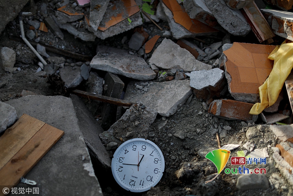 當(dāng)?shù)貢r(shí)間2018年10月7日,印尼帕盧,兩名男子從地震廢墟中找回他們?nèi)ナ栏改傅漠嬒?。圖片作者:JORGE SILVA/視覺中國