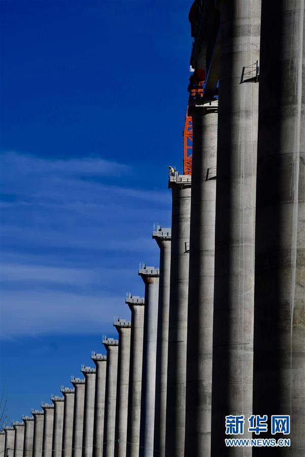 中鐵十一局的工人在川藏鐵路拉林段昌果特大橋進行鋪軌作業(yè)(10月16日攝)。 近日,川藏鐵路拉薩至林芝段昌果特大橋開始鋪設行軌排、架設梁片,標志著川藏鐵路拉林段正式進入鋪軌階段。 新華社記者 覺果 攝
