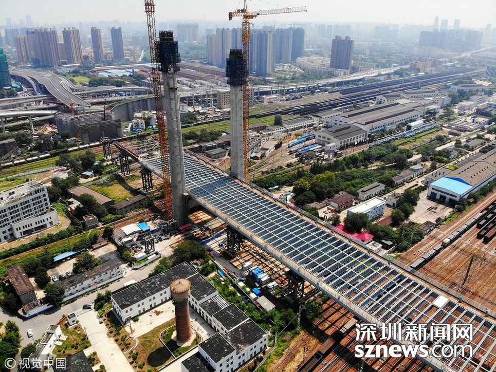 深圳新聞網(wǎng)訊 2018年8月19日,鄭州,跨亞洲最大火車站編組站的農(nóng)業(yè)路高架鄭北大橋工程開始最后一輪頂推,長度為160米,約占總頂推長度的1/3,頂推重量達到9000噸。