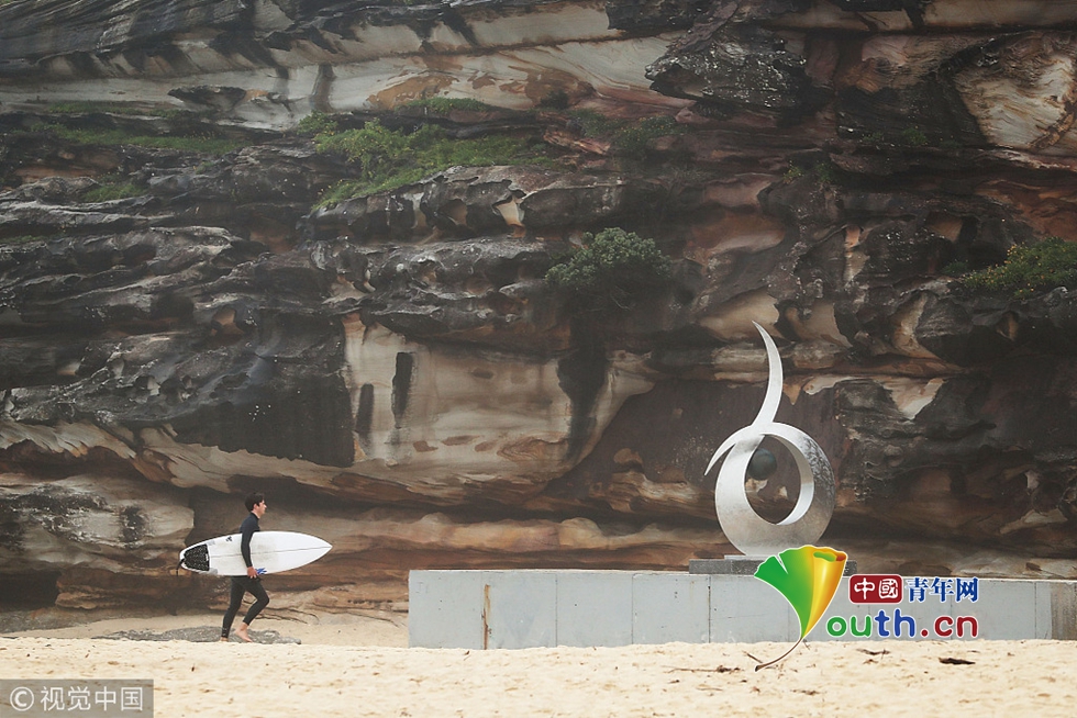 慎點!澳大利亞邦迪海灘雕塑展一幕