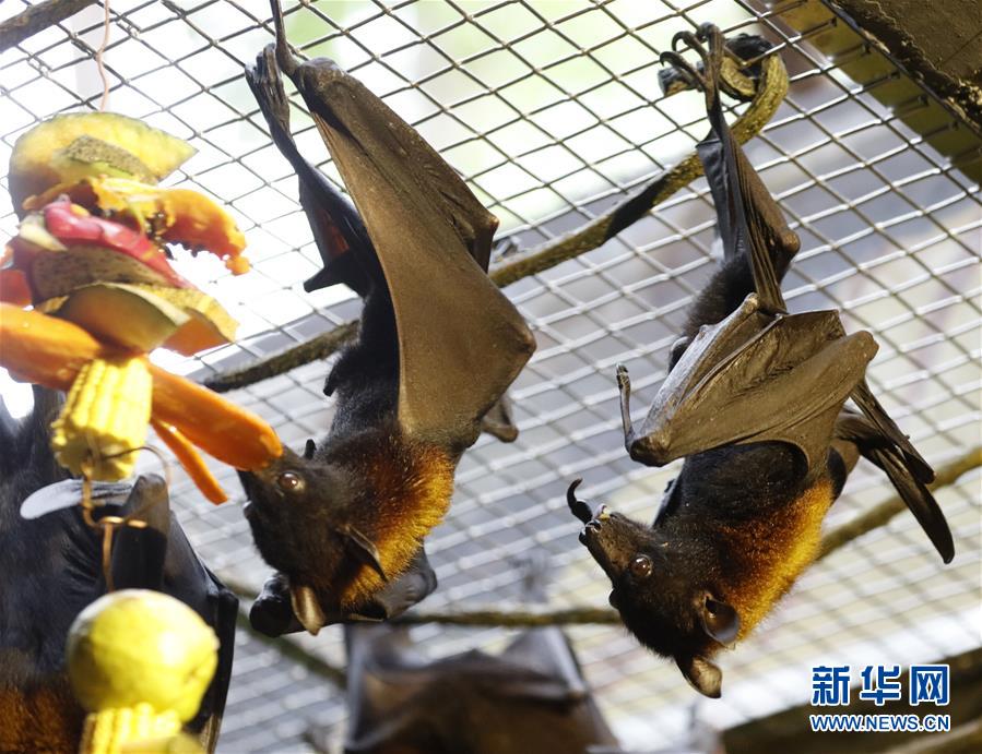 10月18日,馬來大狐蝠在進(jìn)食。 當(dāng)日,馬來大狐蝠在廣州長隆野生動(dòng)物世界首次展出。馬來大狐蝠體長20至25厘米,翼幅最大近兩米,主要分布在印度尼西亞與馬來西亞等地。 新華社記者 黃國保 攝