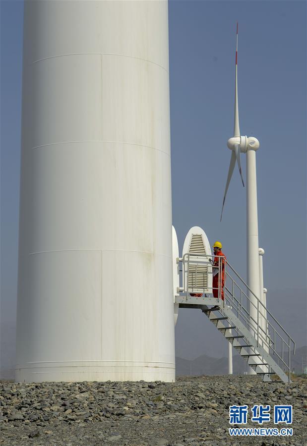 在新疆烏魯木齊達坂城風力發(fā)電場,工作人員查看風力發(fā)電設備(2018年9月18日攝)。今年以來,新疆穩(wěn)步推進新能源參與“疆電外送”、擴大與燃煤自備電廠調(diào)峰替代交易等多種電力交易方式,著力破解“綠色電力”上網(wǎng)難題,新能源發(fā)電量同比增加近13個百分點,而棄電量和棄電比實現(xiàn)“雙降”,綠色發(fā)展理念進一步落實。新疆是我國重要的能源供應和儲備基地,風能、太陽能儲量豐富。近年來,新疆新能源裝機總量突破2700萬千瓦,規(guī)模和占比均居全國前列。新華社記者 趙戈 攝