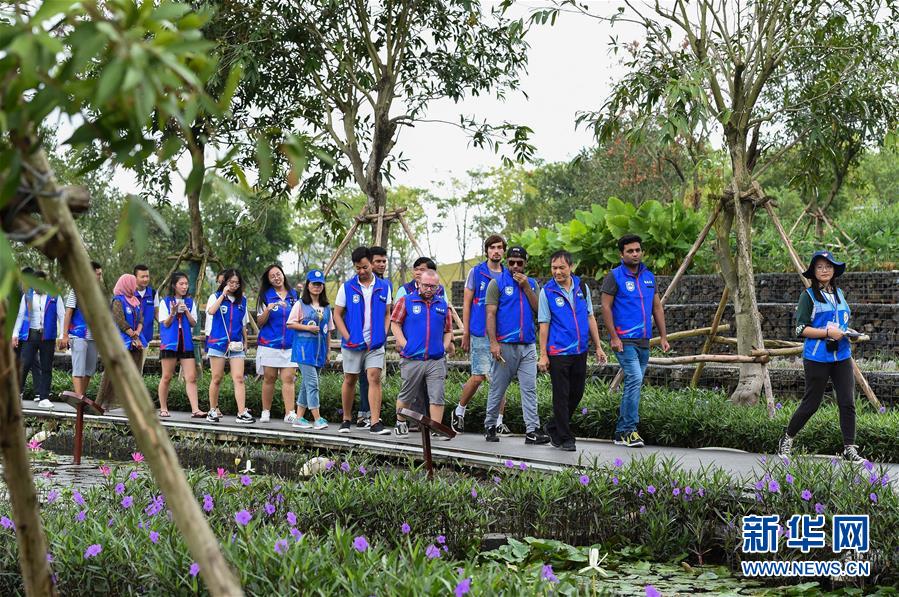 在??谑忻郎岷峪P翔濕地公園,參加濕地保護志愿服務(wù)講解員培訓(xùn)的留學(xué)生志愿者一邊參觀一邊聽中國志愿者講解(10月21日攝)。 ??谑续P翔濕地公園內(nèi)流水潺潺,綠草如茵。很難想象,這個市民游客休閑散步的好去處、具有強大污水凈化功能的濕地公園,兩年前還是臭氣熏天、人們避之不及的垃圾堆填場。 把生態(tài)文明建設(shè)放到更加突出的位置,近兩年來??谑幸詽竦爻鞘薪ㄔO(shè)為突破口,不斷創(chuàng)新城市生態(tài)治理,著力改善生態(tài)民生,在生態(tài)文明建設(shè)上闖關(guān)探路。 新華社記者 楊冠宇 攝
