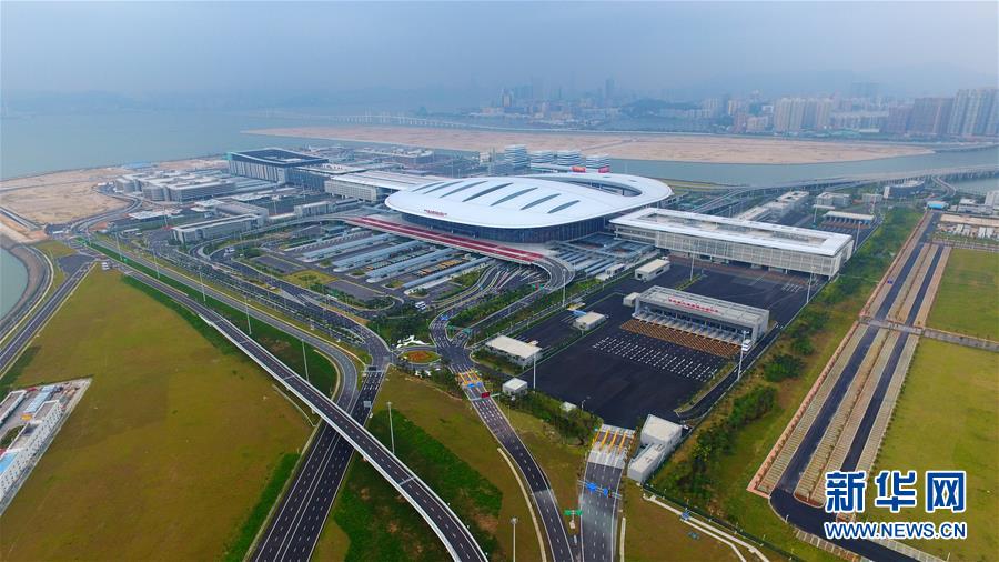 10月24日無人機(jī)拍攝的港珠澳大橋珠海公路口岸。當(dāng)日9時,港珠澳大橋正式通車。 新華社記者梁旭攝