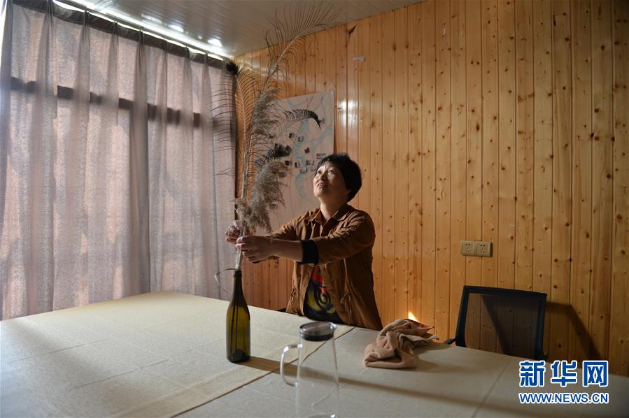 “60后”村民周小芳在家中整理將用于開(kāi)民宿的房間(10月23日攝)。她家有一棟三層樓,準(zhǔn)備辦民宿。新華社記者 尹棟遜攝