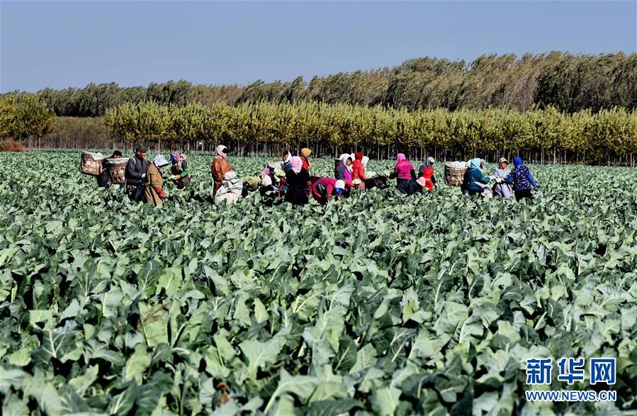 10月29日,樂亭縣馬頭營鎮(zhèn)馬頭營村的農民在收獲菜花。 新華社記者楊世堯攝