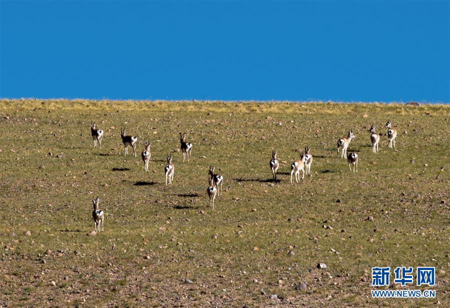 在西藏阿里地區(qū)境內(nèi)拍攝的國家二級保護動物藏原羚(9月19日攝) 阿里地處西藏西部,平均海拔4500米以上,面積30多萬平方公里,羌塘國家級自然保護區(qū)幾乎涵蓋整個阿里地區(qū),是眾多野生動物生活的樂園。 新華社記者 旦增尼瑪曲珠 攝