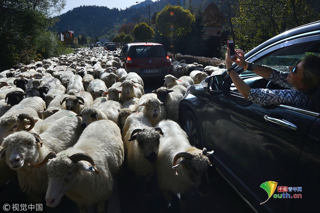 綿陽過馬路,司機被阻斷停下拍照。