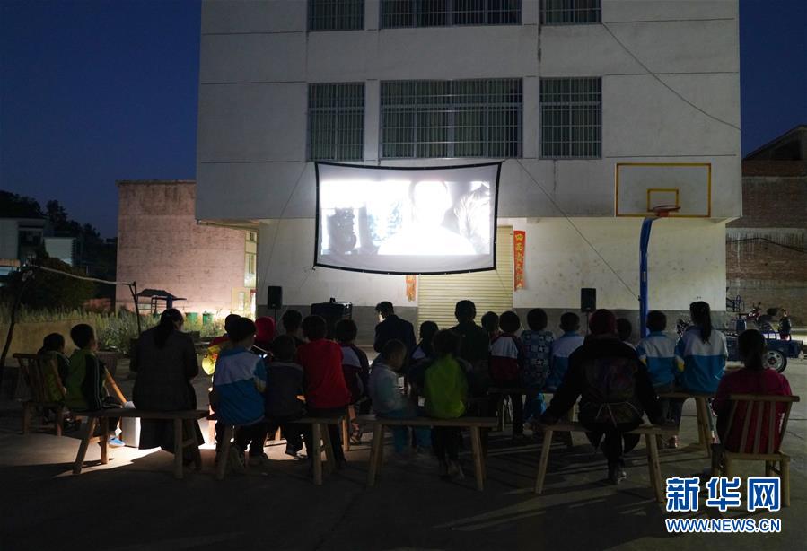 10月30日,寬田鄉(xiāng)山下村的百姓在觀看曾紀連為他們放映的電影。 新華社記者 胡晨歡攝