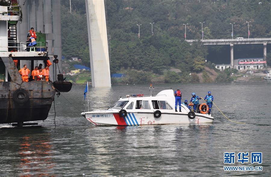 這是10月29日拍攝的重慶萬州公交車墜江事故救援現(xiàn)場。新華社記者 王全超 攝
