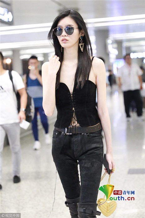 2018年7月25日,上海,奚夢瑤現(xiàn)身機(jī)場,她穿吊帶馬甲配過膝長靴,頻撩發(fā)似女特工。