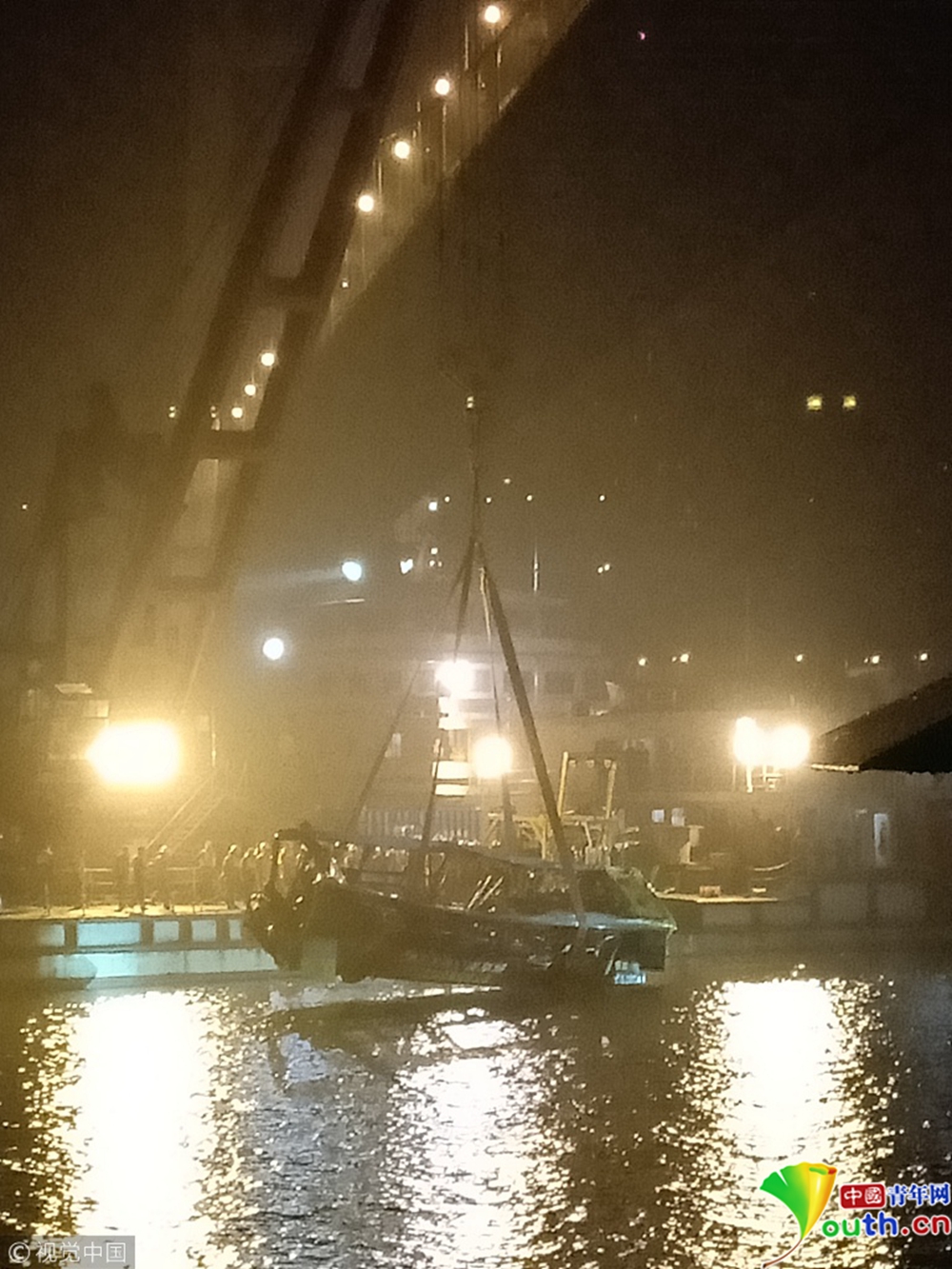 10月31日晚,重慶萬(wàn)州長(zhǎng)江二橋墜江公交車被打撈出水。記者在重慶萬(wàn)州墜江公交車救援現(xiàn)場(chǎng)看見(jiàn),公交車被四條繩索從四個(gè)方向包圍,車身明顯變形,車窗玻璃全部破裂。